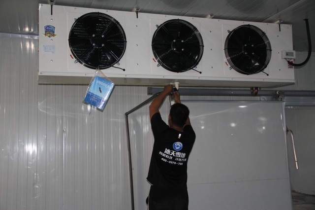 4 號冷藏庫儲存蔬果,制冷機(jī)組選用一臺美國艾默生谷輪ZB114KQ頂出風(fēng)箱式一體機(jī)制冷機(jī)組。艾默生谷輪銷量名列前茅,進(jìn)入國內(nèi)早,能耗比優(yōu),靜音節(jié)能。內(nèi)置熱保護(hù),極大增加壓縮機(jī)壽命。選用一體式冷凝器,散熱面積大,美觀度高,壓縮機(jī)保護(hù)好,減少維護(hù)成本。蒸發(fā)器冷風(fēng)機(jī)選用一臺 DD200 高拉伸風(fēng)筒,成倍增加換熱量,降溫速度快,送風(fēng)距離遠(yuǎn)。